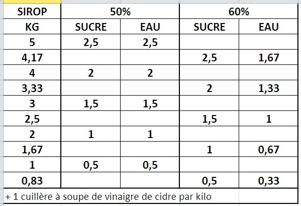 Web Tableau de préparation du sirop de sucre pour lalimentation des abeilles. Un sirop dincitation et un sirop de.